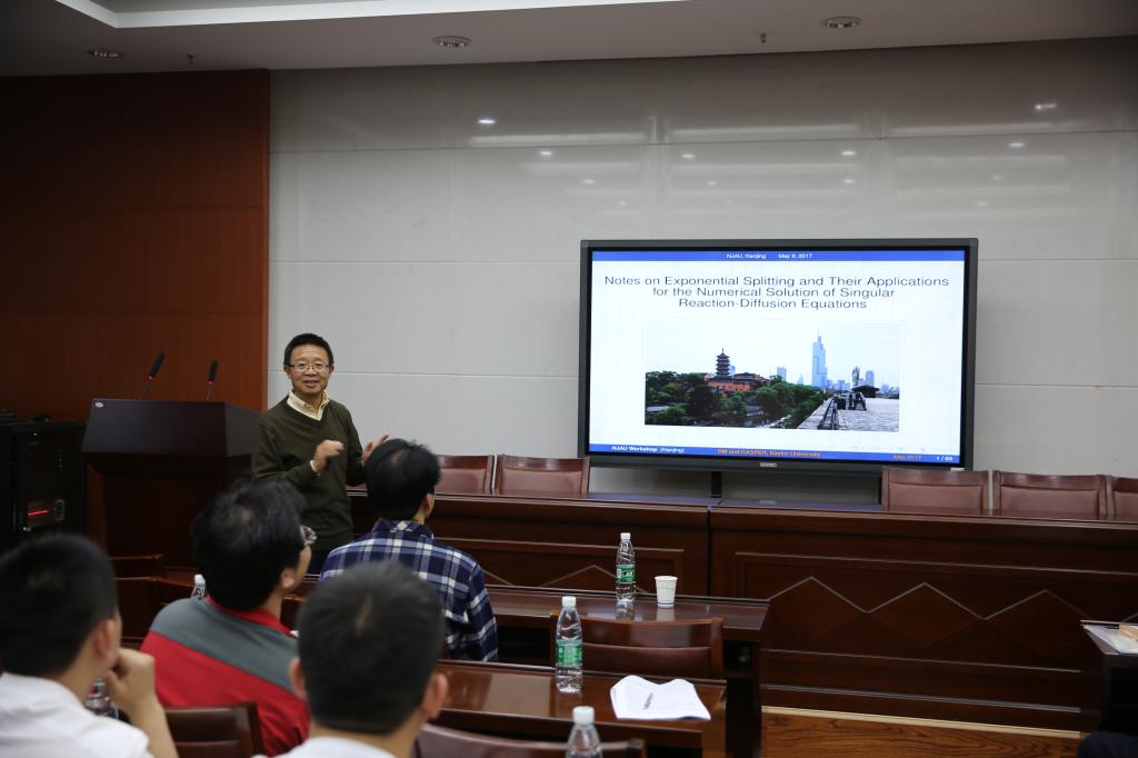 2017年5月9日,黄色电影 报告厅成功举办了“微分方程保结构算法及应用”的专题报告会。本次报告的主题为微分方程保结构算法及应用,具体涉及指数分裂法与奇异反应扩散方程的数值解法,分数阶扩散方程的有限差分方法,平均向量场方法,算子常数变异公式及其应用等。应黄色电影 游雄教授邀请,美国Baylor大学盛秦教授,东南大学孙志忠教授,南京师范大学王雨顺教授,南京大学吴新元教授莅临我校访问交流,参加报告会的有黄色电影 、东南大学、山东曲阜师范大学的师生20多名。报告期间各位教授与师生们热烈互动,耐心地解答师生们的提问,与会师生普遍感到收获很大。学院领导对此次国际交流活动高度重视,并给予了大力支持。