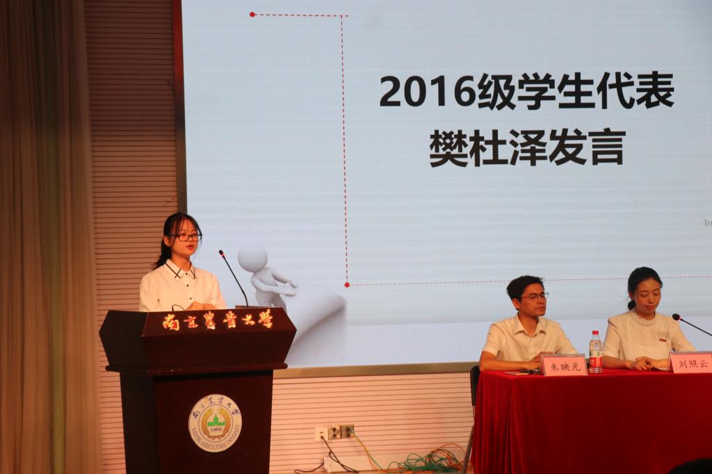 老生代表樊杜泽和新生代表晋鹏淋分别站在本科生涯终点和起点的角度上,或是结合自己的本科学习历程,或是回顾自己的军训经历,同大家分享了自己的心得体会。