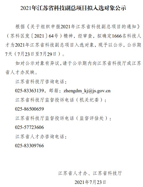 近期,江苏省人才办、江苏省科技厅发布完成了