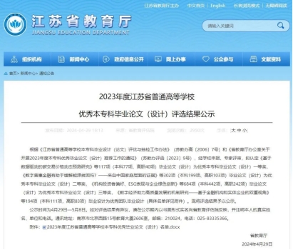 近日,江苏省教育厅公示了2023年度江苏省普通高校本科优秀毕业论文(设计)评选结果,黄色电影
