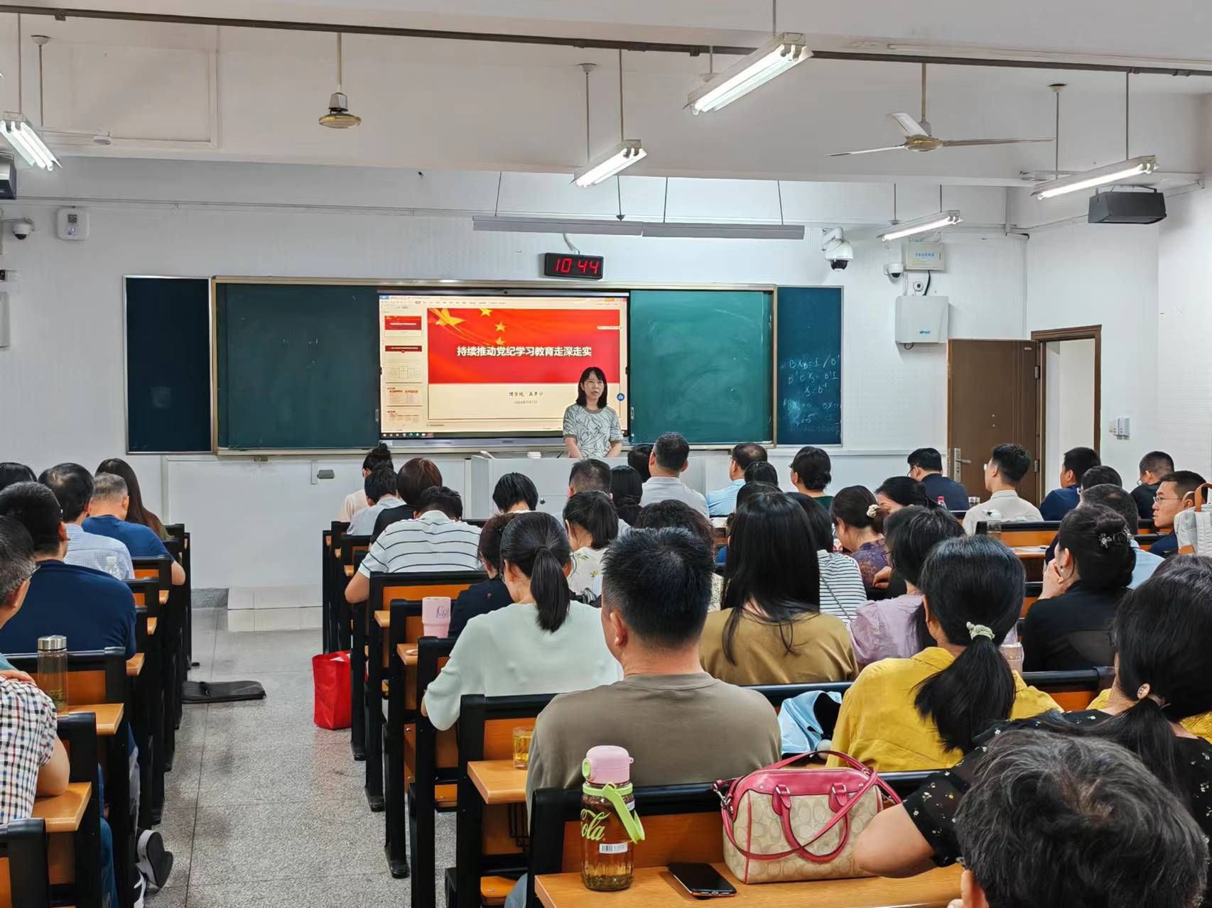 在教四楼B203开展教育教学大会暨教育教学审核迎评建设工作研讨会,会上,院党委书记吴彦宁为全体教职工讲授题为《持续推动党纪学习教育走深走实》的专题党课。