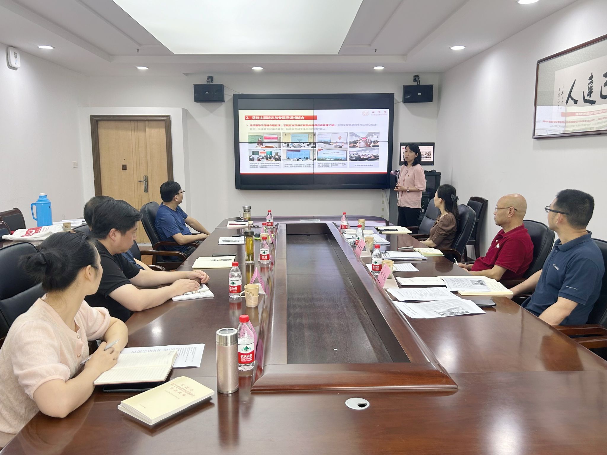 党委坚持“五结合”,强化“三突出”高标准高质量推进党纪学习教育走深走实》为题,针对前一阶段学院开展党纪学习教育情况,存在的不足以及下一步工作思考展开了详细汇报。随后督察组就学院党委开展党纪学习教育的具体过程和成效等与班子展开座谈研讨。