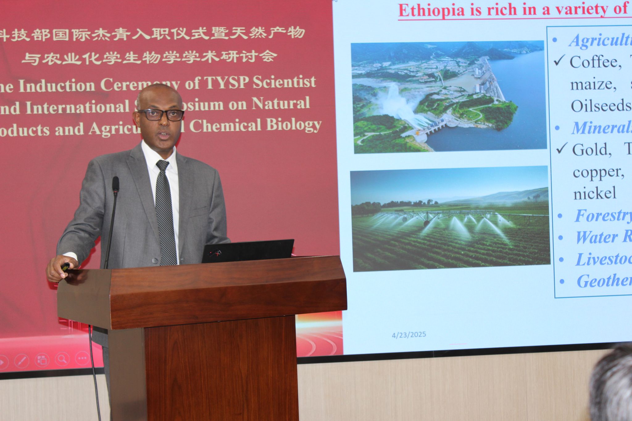国际处副处长魏薇为Gizachew博士颁发“国际杰青计划青年科学家”聘书。
