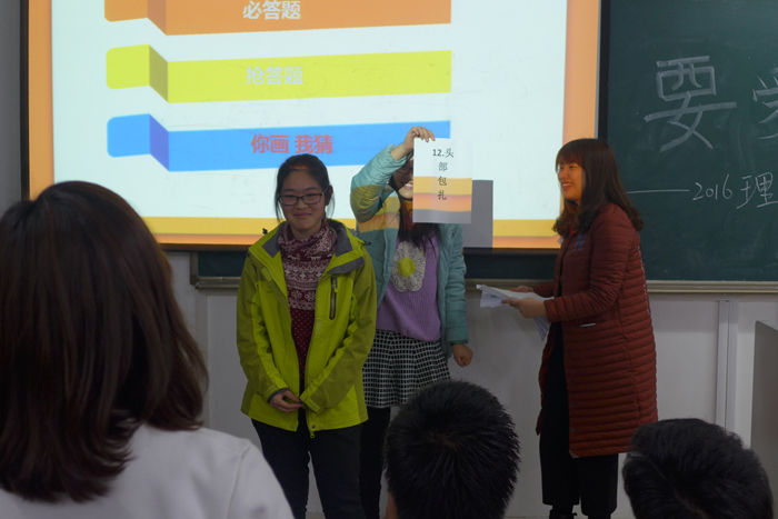 辩论队,大宋王朝队。本次知识竞赛分为三个环节。首轮环节是必答题环节,每队一题,轮流答题。第一轮过后,第二组以55分的优势暂时领先,其他三组紧追不舍,比分仅差分厘。第二轮是抢答环节,竞抢激烈,场上比分逐渐拉开差距。两轮过后,参赛选手稍作休息,进入场上互动,由现场观众抢答题目,答对的同学可获得精美礼品。第三轮为你画我猜,每队派2人参赛,一人运用不含答案发音的描述以及肢体语言向另一选手传达信息,猜对词语可获得加分,猜错或跳过不得分。选手们配合默契,比赛现场妙趣横生。三轮结束,此次竞赛也接近尾声。最终“进了决赛”队获得一等奖。