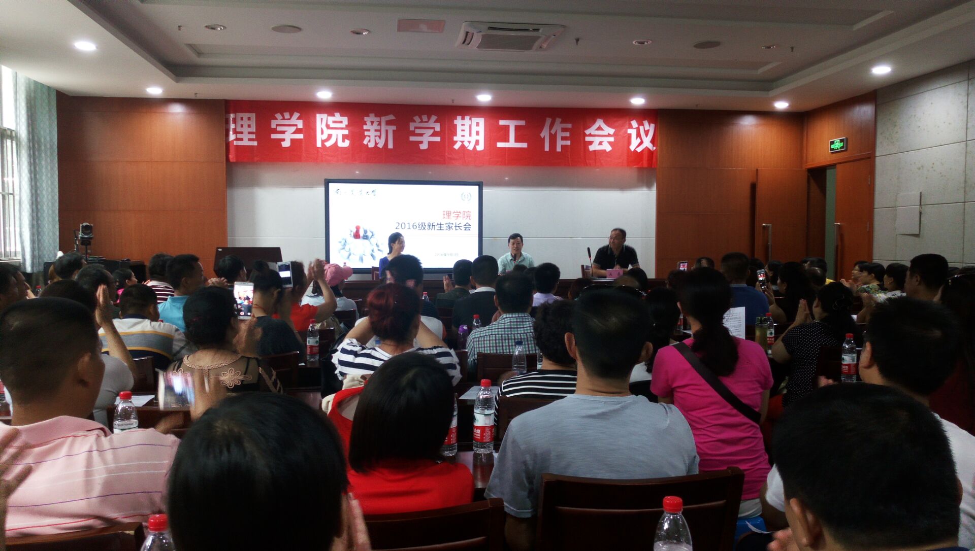 报告厅隆重举行。学院党委书记程正芳副教授、党委副书记刘照云老师、副院长吴磊教授、班主任陈荣顺老师、陈丹老师、辅导员黄芳老师和2016级逾百名新生家长参加了此次会议。