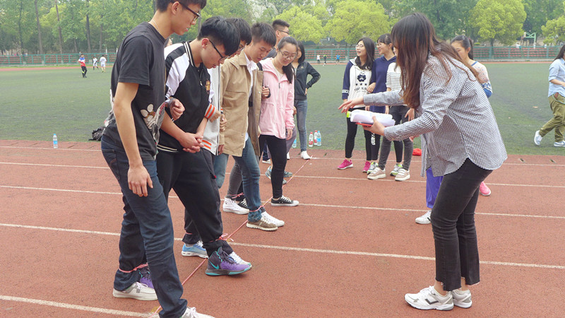 下半场的游戏都是大型项目。如第八个项目“齐心协力”,要求各班派出三男三女,六人七足,考验大家的默契度,比赛中各班发挥创意,有一个班级依仗身高优势,把个矮的同学提起来,速度简直可以算是健步如飞了,引得全场拍手鼓掌。第九个项目猛龙过江本质就是跳大绳,显然这个项目取得了大部分同学的热爱,同学们都跃跃欲试,两旁观战的同学都饶有兴趣地看着跳大绳的同学们,对他们跳绳的技艺表示由衷地赞叹。