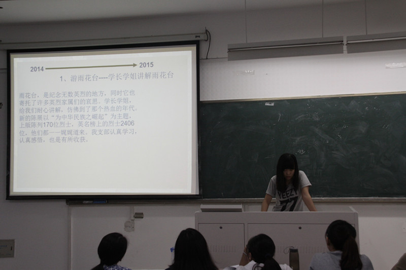 参加此次结项汇报活动的共有三个先锋支部,分别是研究生支部,应化141支部以及应化131支部。汇报围绕着各先锋支部活动的机制建设、学风建设、文化建设、特色活动建设以及经费使用情况等几项内容展开。经过每一个的先锋支部的PPT展示以及绘声绘色的演讲,充分展示了该团支部在工作期间的劳动成果。如应化141团支部“青春无畏,敢闯敢拼,青春似火,超越自我”的主题,及开展了多项主题活动,各先锋支部的活动主题鲜明,活动丰富,宣传得力。