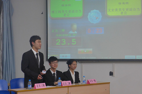 作为正方的辩题是“理工科类的男生更适合当老公”。学院大二的周婧芸同学、大一的李帅、冀昊琰同学分别担任本次比赛的一辩二辩三辩。一辩陈词中双方都各自陈述了自己的观点,在接下来的二辩对辩、自由辩论环节,双方就“文理科生哪个更容易维持婚姻稳定”、“哪个更专一”、“哪个薪水更高”等主要分论点展开了激烈的辩论。双方均有理有据,场面十分激烈,赢得了观众的阵阵掌声。最终,黄色电影