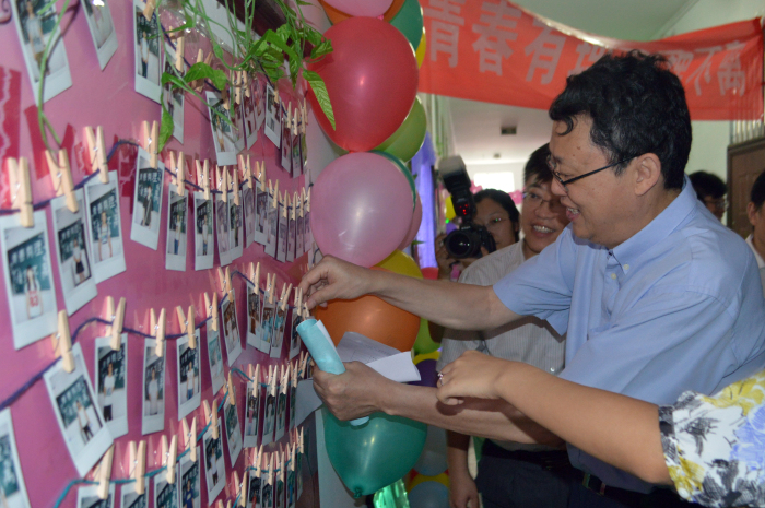 每当学弟学妹们怀着期待进入教室,学长学姐们那发自内心的笑容总能带给他们如家般的温暖。旁边桌子上各个步骤都写的清楚明白,查验通知书、收档案、收照片、发材料袋、通知班级寝室信息、统计家长联系方式地址邮编等,繁琐的过程在学长学姐的悉心指导下变得清晰起来。党委书记程正芳、党委副书记刘照云、辅导员朱志平也都亲自到这里指导学生工作,与学生家长亲切交谈。在报到过程中,有的新生虽然表现得有点手忙脚乱不知所措,甚至有的新生忘记带团员证、证件所需照片,但在学长学姐们细心解说下,新生们都能顺利完成报到。在新生与家长放松的表情上,不难看出他们对黄色电影