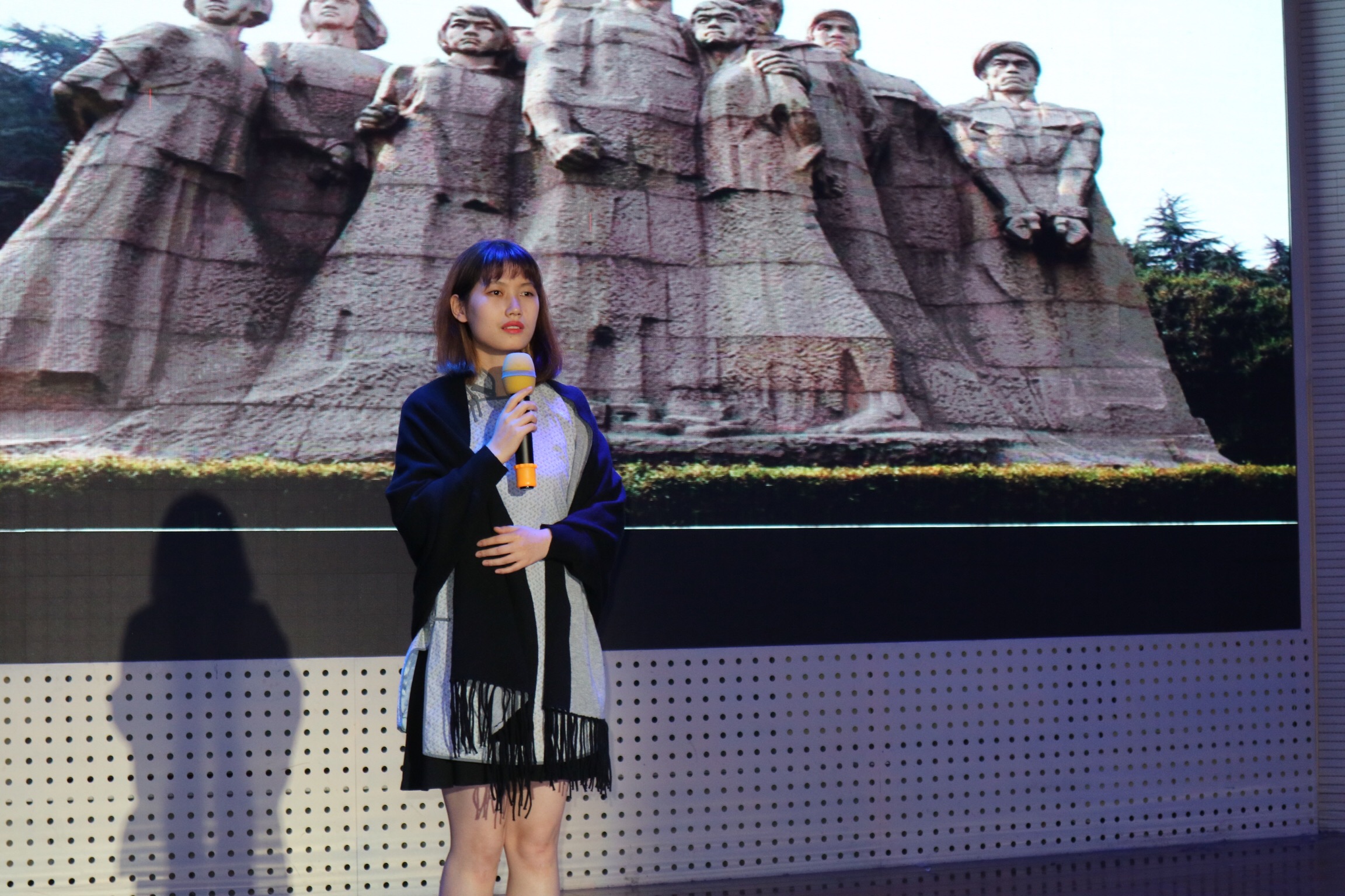 两位主持人宣布比赛正式开始后,《我的抗战》多人朗诵向观众们见面了,朗诵者们生动的再现了当年抗日烈士们的壮志豪情,大家都沉浸在雨花先烈们为国牺牲的爱国精神中。紧接着第十一届“南农小雨滴”队长李歆上台进行年度工作总结,汇报了上一学年雨花台讲解队所开展的活动以及取得的一些成果。总结结束后开始选手们的主题演讲。