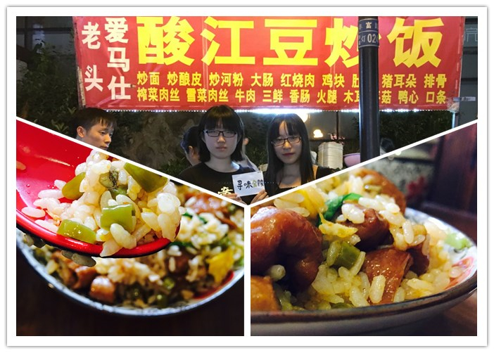 【老头爱马仕酸豇豆炒饭】摊位摆在新街口丰富路103号,为了保证炒饭的口感,老板每天中午12点开始烧制卤菜,用心对待自己炒的每一碗饭。当队员们询问为何叫这个名字时,老板说因为这家店原来的老板是一位爱吃酸豇豆的老头。在四十几年前,老头还不是老头,是个健壮的小伙子,从安徽来到南京打拼,突然爱上了酸豇豆,便开起了南京独一家酸豇豆炒饭。就这样,一炒就是三十余载,就成了现在的老头酸豇豆炒饭。