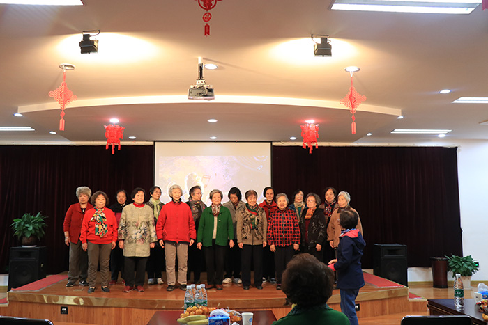 党委副书记刘照云发言,刘书记表达了对老一辈工作者的敬意,并祝福她们健健康康,在接下来的日子里笑口常开。随后宣布演出正式开始。