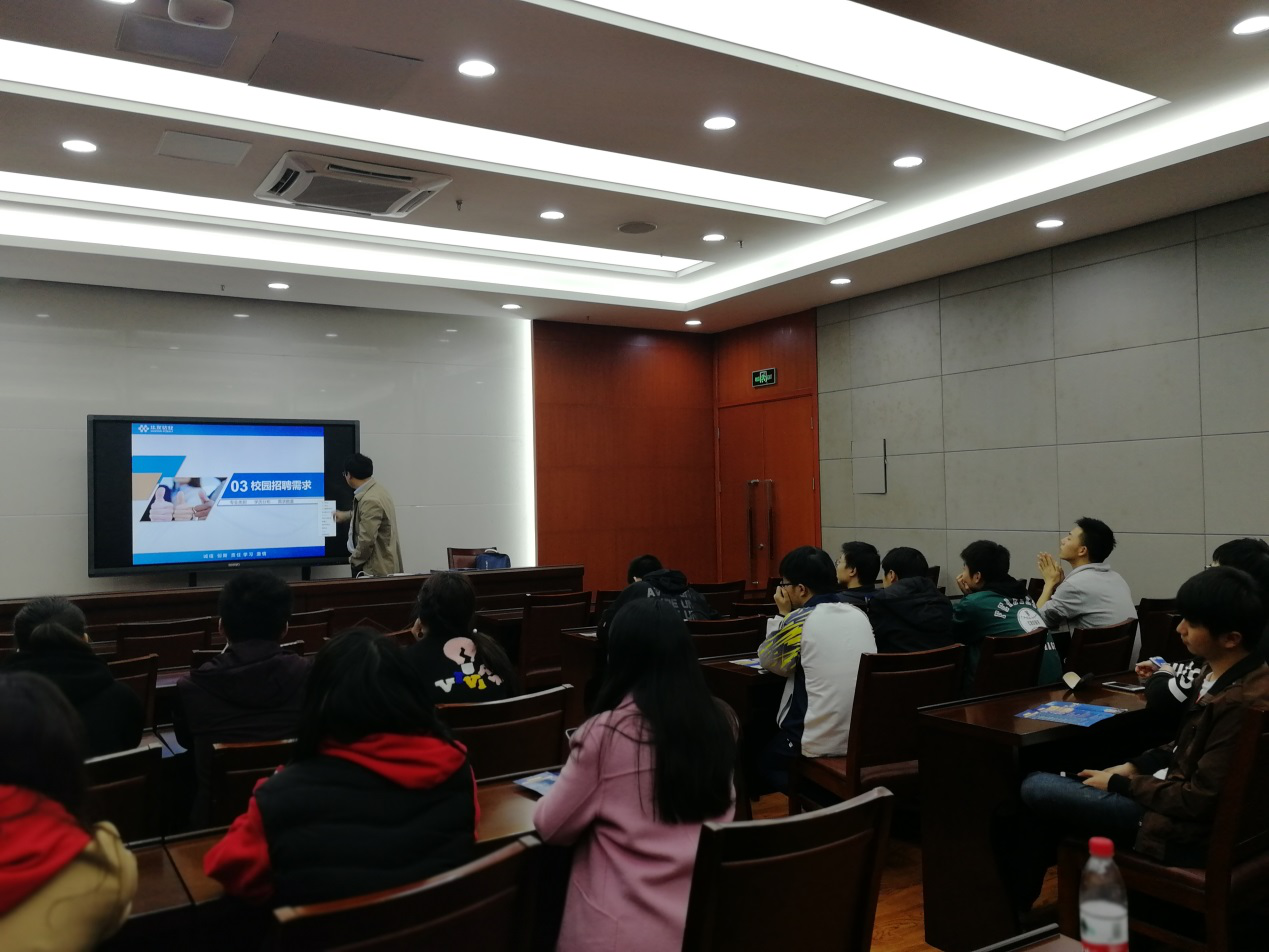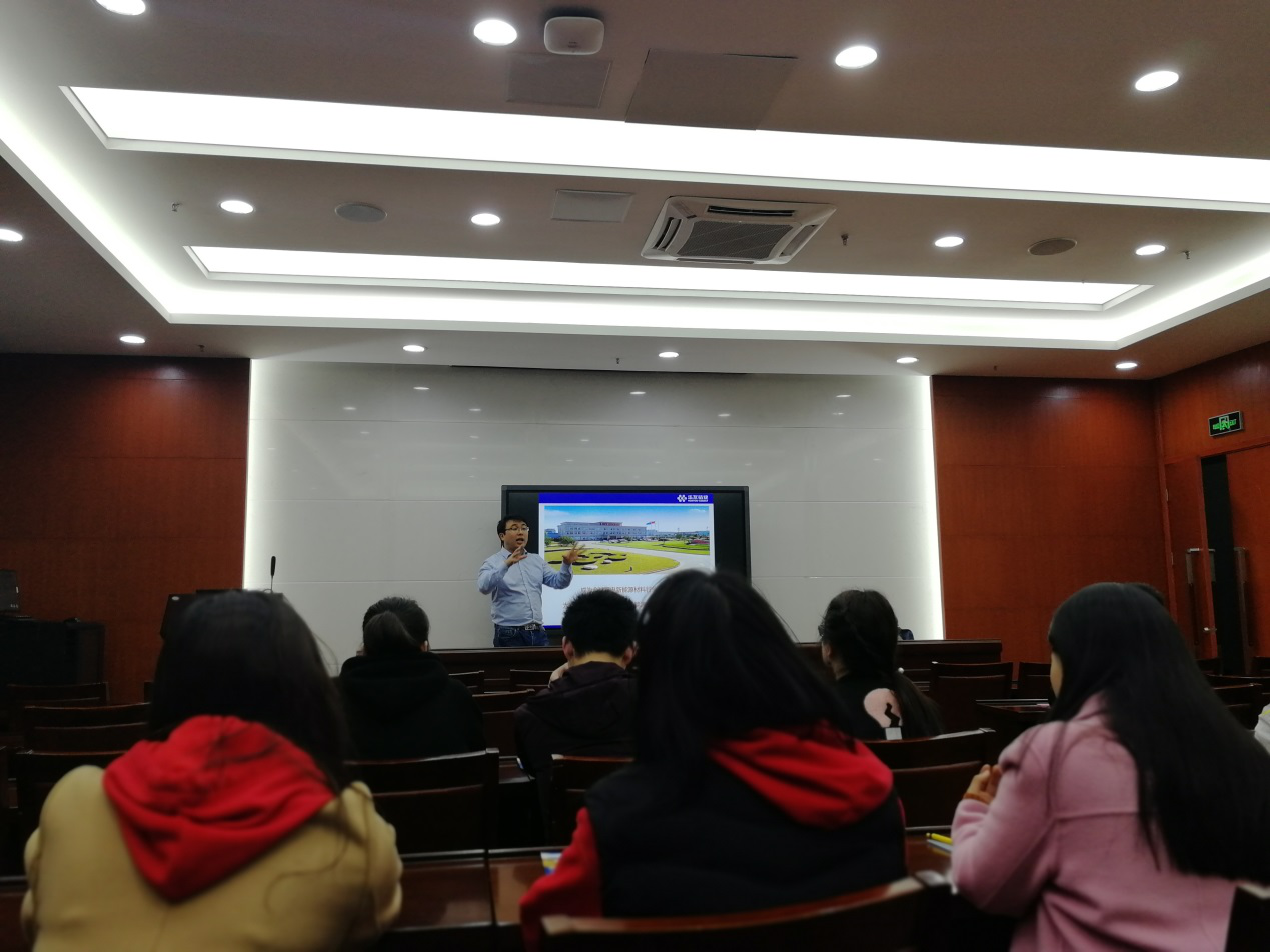 报告厅进行招聘宣讲,公司HR也是我们的优秀校友王世豪老师以及化学、公管、经管等校内各对口专业感兴趣的学生参加了此次活动。
