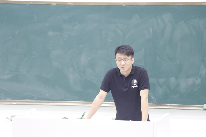 杜超老师向新生们介绍新生手册的相关事宜