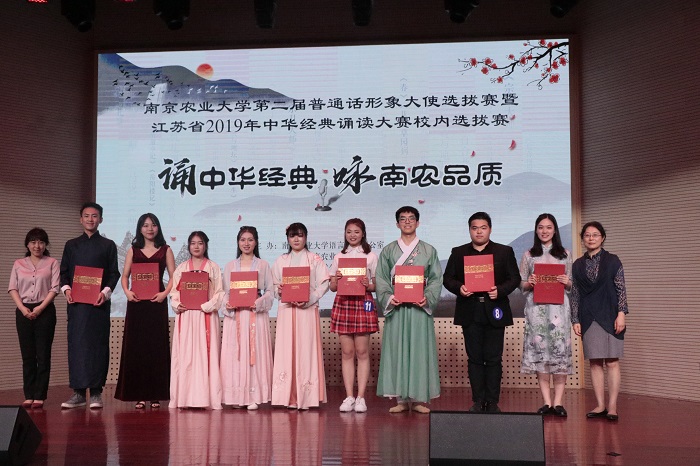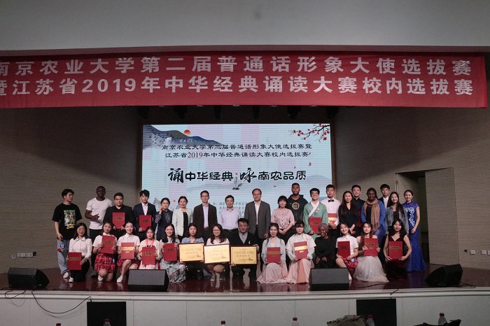 决赛分为小组朗诵,即兴演讲和国语传诵三个环节。首先每4位选手为一组进行集体朗诵,之后按照选手号码序号进行组内选手个人的即兴演讲与国语传颂环节。在即兴演讲中选手当场抽取演讲主题,并且思考作答。在国语传诵中,选手任意抽取一段文字,现场教外国友人朗读。第一组选手为我们带来的《家国叹》,不禁让人感慨,心中有家,胸中有国,家国是我们永远的牵挂。第二组选手带来的是《读中国》,观众们纷纷感叹中国就像一本书,既有源远流长的历史,也有辽阔无垠的土地,仿佛愿用一生去品味。第三组同学带来《写给未来的你》,第四组带来《美丽南农,梦在远方》,带领观众展望未来,感恩母校。在最后的才艺展示环节,四组选手分别带来歌曲表演《大鱼》、小品《快与慢》、《歌舞青春》、《知否知否》,为观众带来一场视听盛宴。