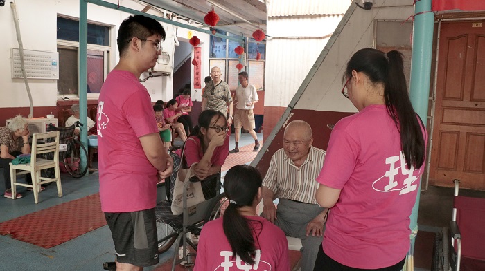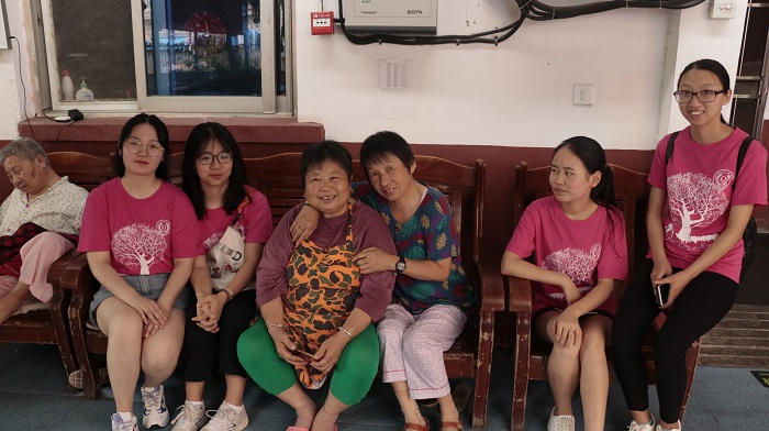 7月16日至18日,老年公寓实践团队去到了美林老年公寓开展实践活动。每天上午,队员们在学校集合好后,一起乘坐公交车去往美林老年公寓。尽管正值暑期,天气炎热,队员们依旧兴致高涨。到达美林老年公寓后,实践团队负责人先和老年公寓的院长说明了来意,确保了可以展开实践活动,然后实践团队才进入老年公寓。队员们和坐在大厅的爷爷奶奶们有礼貌地打了招呼,爷爷奶奶们也很热情地笑着回应大家。院长给实践团队布置了一些简单的劳动任务,队员们也很快地投入劳动中。有人拿着抹布细致地擦拭门窗、窗台、栏杆,有人拿着拖把认真地拖地。劳动任务完成后,队员们将劳动工具放回原处,随后就开始陪伴老人。由于有一些老人在房间内休息,不方便去打扰他们,所以队员们基本上是陪一楼大厅的老人们聊聊天。老人们年纪大了,表达能力有些弱,再加上很多老人都是说的方言,从外地来南京读书的队员们不太能听懂,所以交流并不是很顺畅。其实队员们来和老人聊天更多的是倾听和陪伴,老人们有人陪着、有人听他们说说话就会很开心。在实践活动进行的过程中,各小组也逐步展开了专访活动。组长先提前和专访对象进行沟通,向专访对象解释了本小组的专访任务,在取得专访对象的同意后,开始了专访活动。在专访过程中,有一人负责向专访对象提问、一人负责做专访的过程记录、一人负责拍摄专访视频、一人负责拍摄照片。和老人们相处的时光很愉快也很短暂,到了中午,实践团队也要回学校了。