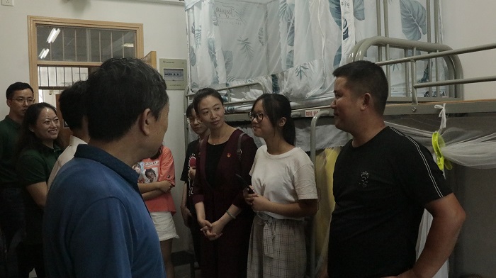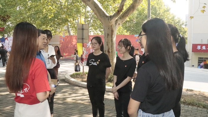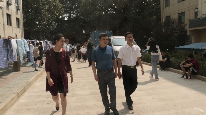 执行了双班主任制度,他们都是新生的班主任。他们还去了新生的宿舍,和新生还有他们的家长进行了简短的交流。为了进一步了解新生的生活,她们亲切地询问了新生的故乡,向他们介绍了南京的情况。家长们也说到“孩子交给你们我们就放心啦”。