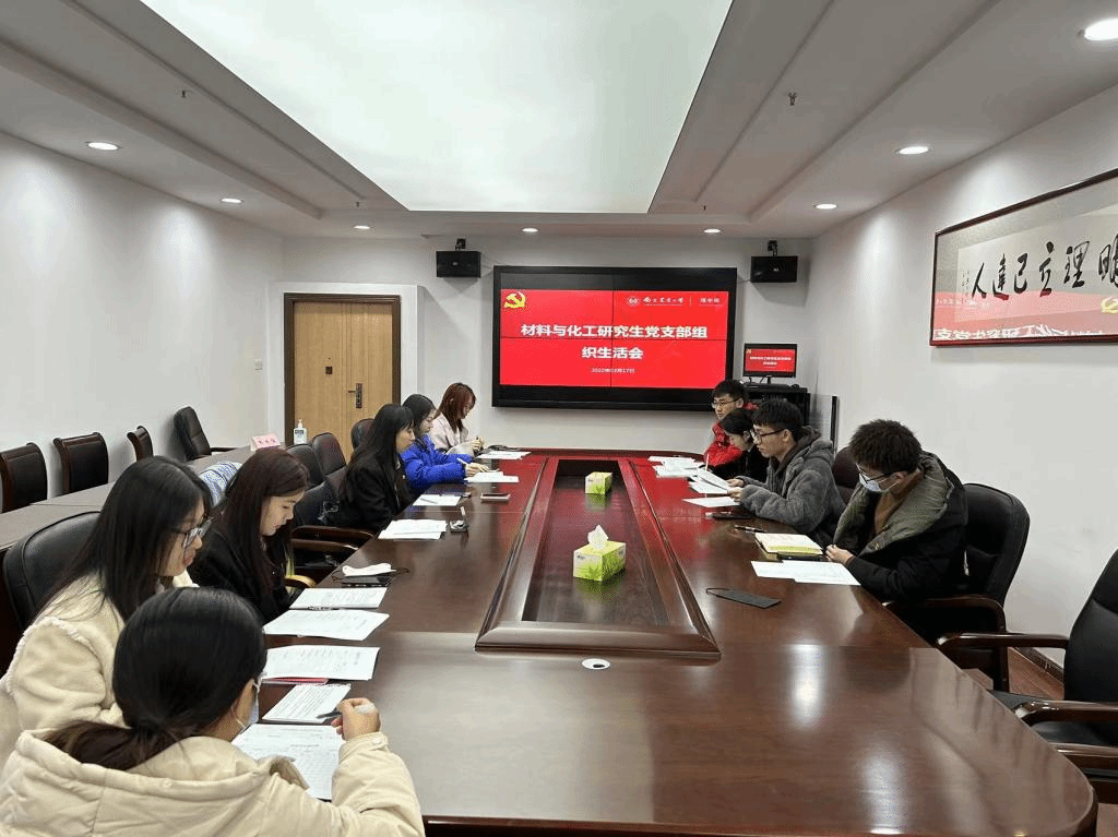 3月17号下午,材料与化工研究生党支部召开了2022年度组织生活会,会上党支部书记魏倩倩、副书记马冲冲结合支部2022年工作情况向全体党员做了述职汇报,征求了全体党员对党支部工作的意见和建议。 会前,支部对此次生活会做出周密部署,提前发放学习材料,组织支部党员开展自学,会上集中研讨,查摆当前学习科研中存在的问题,开展深刻的批评与自我批评。通过此次组织生活会,党员同志们纷纷表示将进一步提高思想认识,主动发挥学生党员的带头作用,在今后的学习、科研、志愿服务中不断完善自己,严格要求,时刻以党员的先进性来塑造自己,用实际行动证明自己。 党支部将以此次会议作为新的起点,在今后的支部工作中定当不驰于空想、不鹜于虚声,一步一个脚印,踏踏实实开展好支部党建工作。