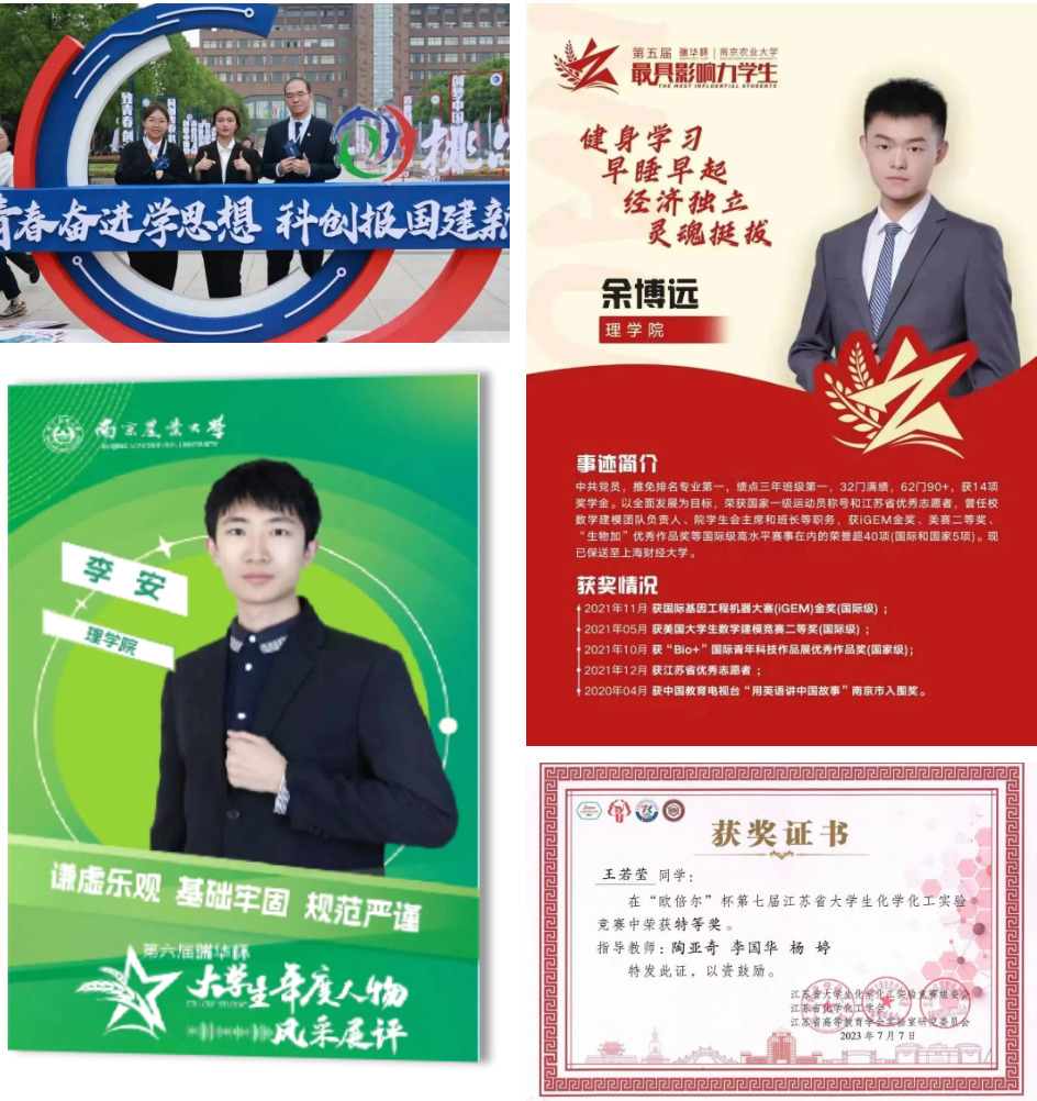本科生余博远获评校第五届“瑞华杯”最具影响力学生、本科生李安获评校第六届“瑞华杯”最具影响力学生提名。“欧倍尔”杯第七届江苏省大学生化学化工实验竞赛中荣获特等奖、二等奖、三等奖,江苏省第十八届“挑战杯”大学生课外学术科技作品竞赛中获“恒星级”奖项,黄色电影