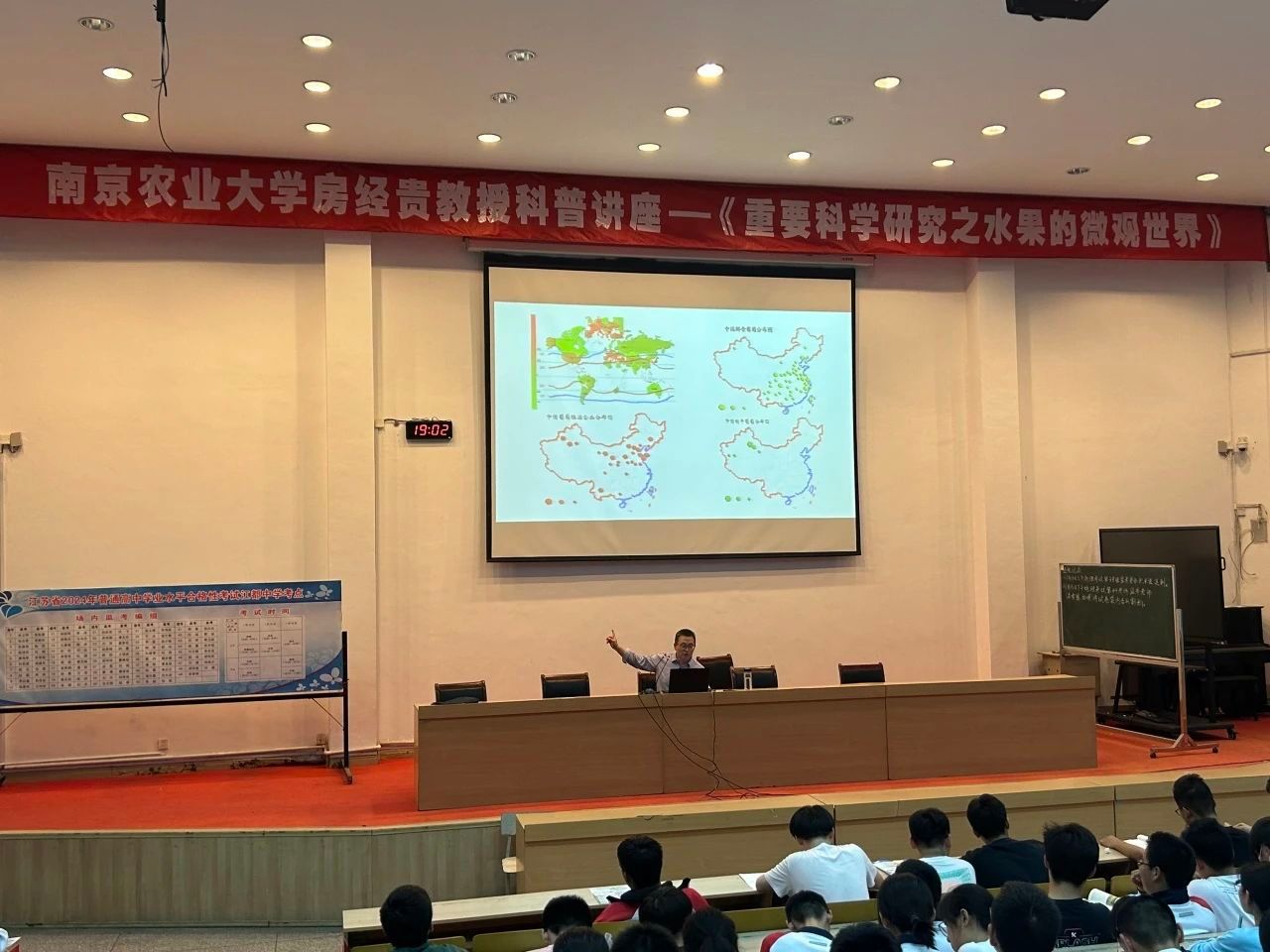 房经贵教授为两所中学的学生开展主题为《重要科学研究之水果的微观世界》的专题科普讲座。房教授从常见的水果葡萄开始引出主题,从葡萄重要性状的遗传特点与调控基因的定位、葡萄分子设计育种策略、葡萄精准育种的实践等方面介绍了近年来国内外前沿性研究方向及其研究团最新研究成果。