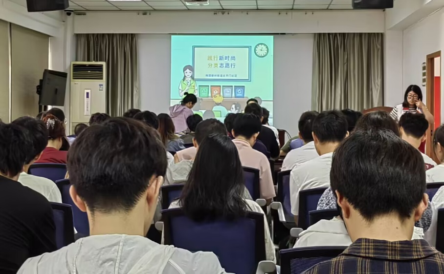 首先,社区工作人员在党群服务中心为同学们举办了一场讲座,内容主要包括垃圾分类的重要性及南京市垃圾分类政策的解读。讲座介绍了垃圾对环境和人类健康的影响,强调了垃圾分类在资源回收和可持续发展中的重要意义。同时,工作人员还详细讲解了南京市垃圾分类的具体要求和标准,不同类型垃圾的分类方法以及投放规定。