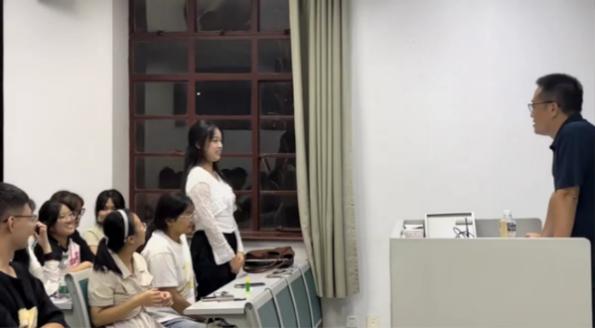 应化242班班会在主楼109教室举行。班主任金冰老师以其幽默风趣的风格开场后,下班党员赵昕颖、团务助理江静为新生介绍大学生活并给予指导。随后,新生们在班主任的引导下依次进行自我介绍,现场气氛热烈。