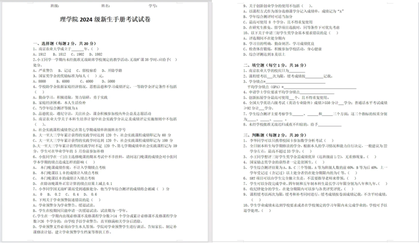 黄色电影 2024级学生手册考试于10月10日圆满落幕!