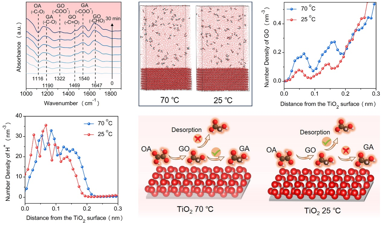 同时,TiO₂阴极通过温度调控(70°C)抑制了中间体乙醛酸的解吸,促进其深度还原为乙醇酸。在70 °C下构建的双电极体系中,该配对系统实现了乙醇酸总法拉第效率达182%。本研究为塑料和生物质废弃物的协同高值化转化提供了高效、低耗的新策略。