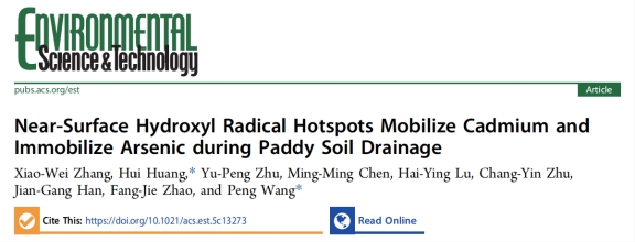 汪鹏教授团队在环境领域期刊《Environmental Science & Technology》上发表题为“Near-Surface Hydroxyl Radical Hotspots Mobilize Cadmium and Immobilize Arsenic during Paddy Soil Drainage”的研究论文。该研究揭示了稻田排水过程中水土界面下方形成的羟基自由基(•OH)“热点”,能够同时促进镉的释放与抑制砷的迁移,为污染稻田中氧化还原敏感性元素的调控提供了新视角。